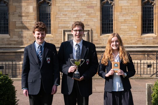 Taming initial nerves and quickly adapting to a new environment, the five teams, and 15 participants in all, gave super performances, displaying intelligence, humour and passion as well as respect and kindness. For some schools, this was the first experience of a public speaking competition and, for most competitors, it was a personal first. All (including us volunteers) left a little wiser and hopefully the experience was of great help to students and teachers. The judges’ retiring room radiated heat from discussions over the super tight margins but, thanks to a consistency across all three team members, Oundle School (pictured) won the day and will compete at the national final at Churchill College, Cambridge, in May, with its chair Iona scooping the best chair award; Loughborough’s Anshul won best speaker and Oscar won best questioner.